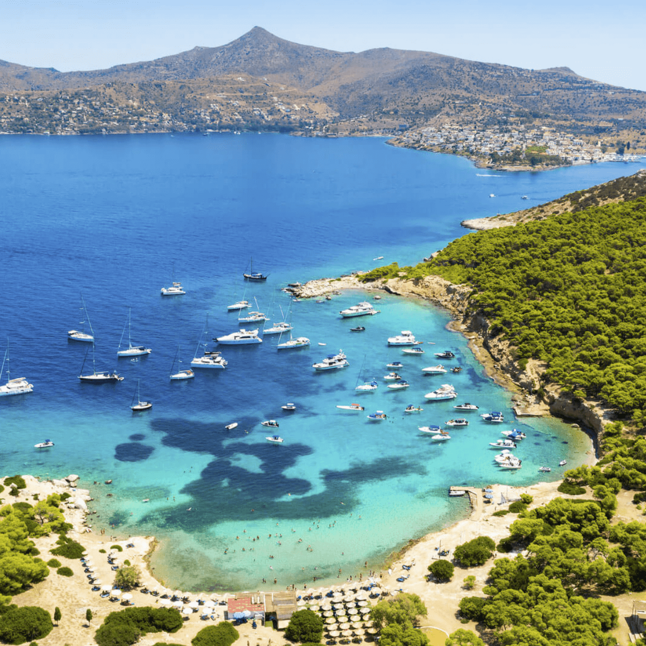 Klima Beach is a hidden treasure for Aegina. Many consider it to be the most special beach on the island. Klima in Aegina is a small cove with crystal-clear waters. The colors of the water are attributed to the surrounding rocks, which create a beach with white sand. Typically, many boats reach this area.