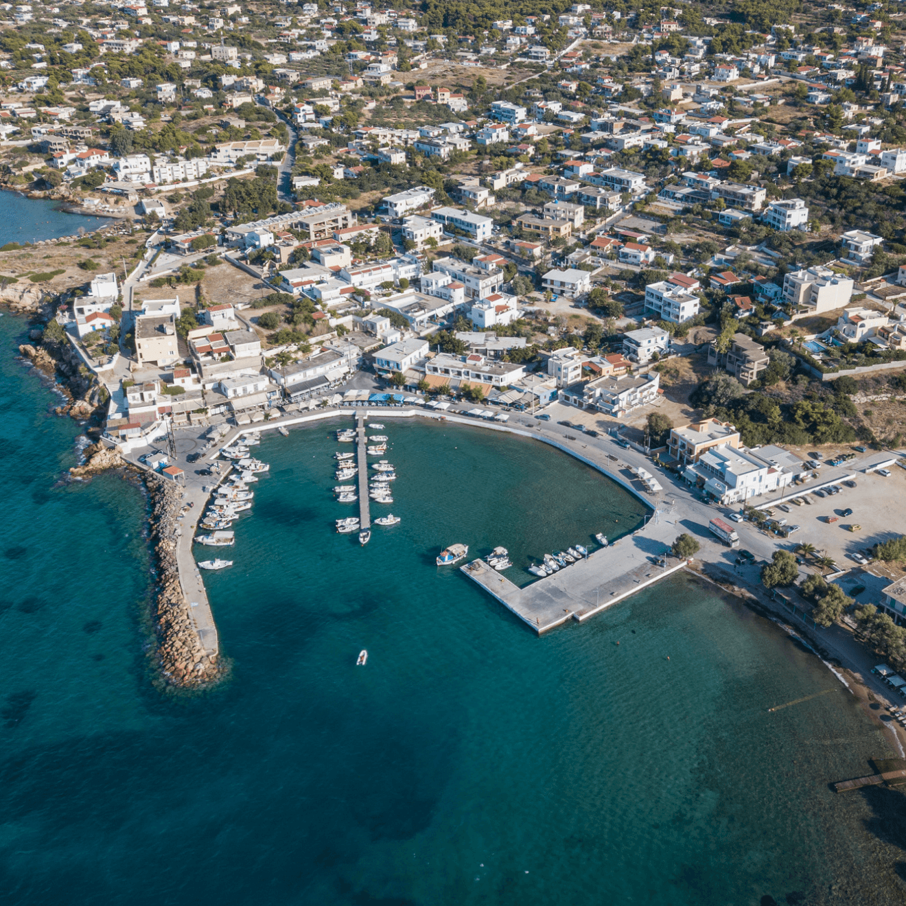 The waters are crystal clear with turquoise blue hues. Perdika is just 2 kilometers away.